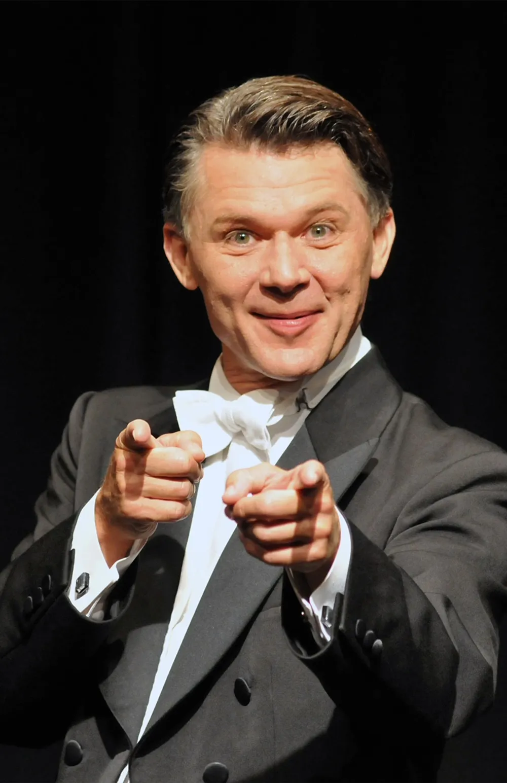 Initiator, Organisator, Moderator und Clown der Comedy-Night: Das kann nur schiefgehen! Außer schlechten Zaubertricks und geklauten Gags hat er nicht viel zu bieten. Zum Glück hat er seine zauberhaften Assistentin an der Seite, und gemeinsam bringen sie nicht nur Seifenblasen zum Schweben…